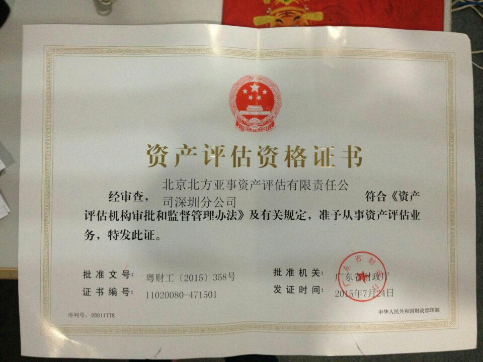 資產評估資格證書